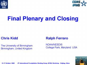 Ralph Ferraro NOAA/NESDIS College Park, Maryland