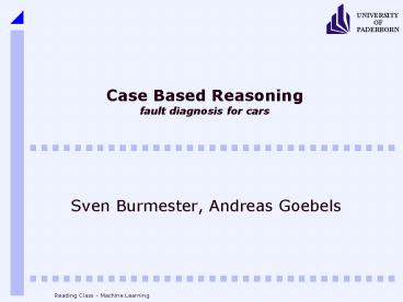 Case Based Reasoning fault diagnosis for cars PowerPoint PPT Presentation