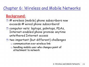 <Notice: Removed> Chapter 6: Wireless and Mobile Networks PowerPoint PPT Presentation