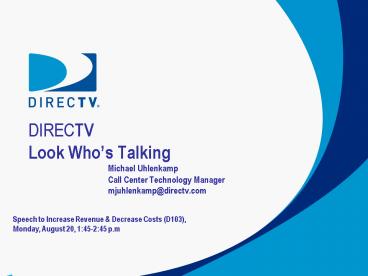 <Notice: Removed> DIRECTV Look Whos Talking PowerPoint PPT Presentation