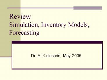 Title: Review Simulation, Inventory Models, Forecasting