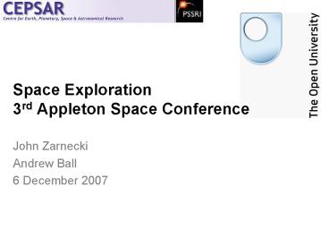 Laboratory, Co-investigator on ASPERA-4 - Manuel Grande, University of Aberystwyth