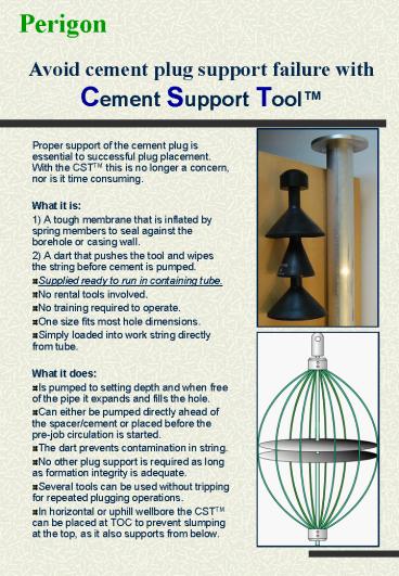 • Proper support of the cement plug is essential to