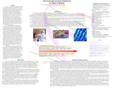 1APPLICATIONS OF DNA FORENSICS IN TODAYS WORLD