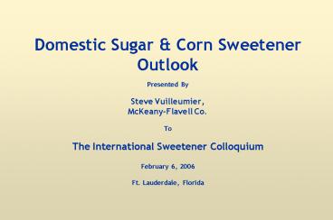 1Domestic Sugar Corn SweetenerOutlookPresented
