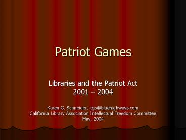 <Notice: Removed> Patriot Games PowerPoint PPT Presentation