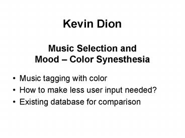 <Notice: Removed> Kevin Dion Music Selection and Mood PowerPoint PPT Presentation