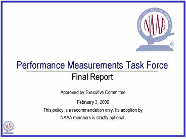 Title: Performance Measurements Task Force Final Report