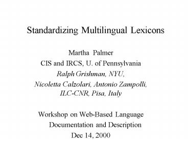 <Notice: Removed> Standardizing Multilingual Lexicons PowerPoint PPT Presentation