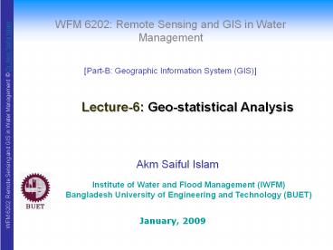Title: WFM 6202: Remote Sensing and GIS in Water Management