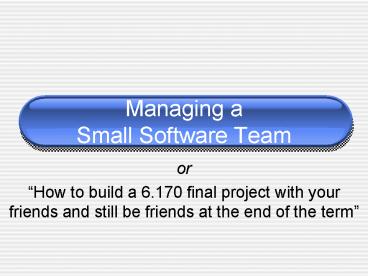 Managing a Small Software Team PowerPoint PPT Presentation