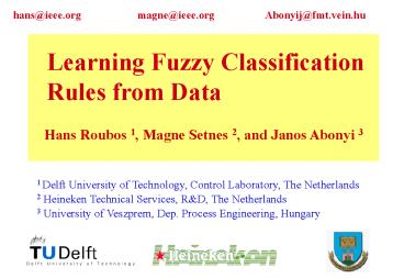 Hans Roubos 1, Magne Setnes 2, and Janos Abonyi 3