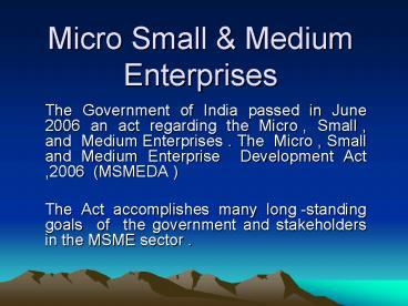 Medium Enterprises . The Micro , Small and