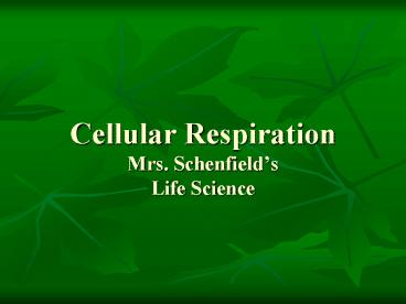 Cellular Respiration Mrs' Schenfields Life Science PowerPoint PPT Presentation