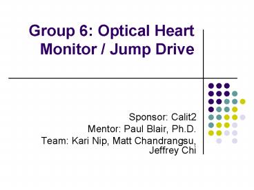Group 6: Optical Heart Monitor Jump Drive PowerPoint PPT Presentation