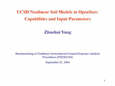 Title: UCSD Nonlinear Soil Models in OpenSees:
