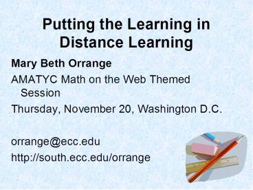 Putting the Learning in Distance Learning PowerPoint PPT Presentation