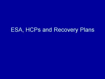 Title: ESA, HCPs and Recovery Plans