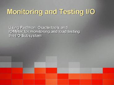 understand the following tasks and concepts. - Monitoring the I/O Subsystem using Perfmon