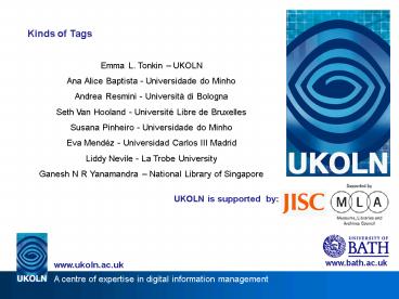 1Kinds of Tags Emma L. Tonkin UKOLN Ana Alice