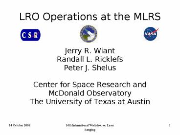 LRO Operations at the MLRS PowerPoint PPT Presentation