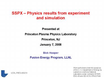 3The Sustained Spheromak Physics Experiment (SSPX)