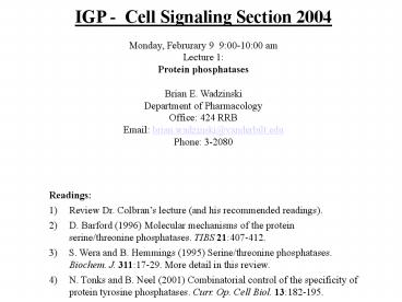 readings). - D. Barford (1996) Molecular mechanisms of the