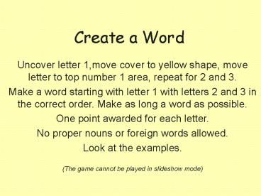 • One point awarded for each letter.