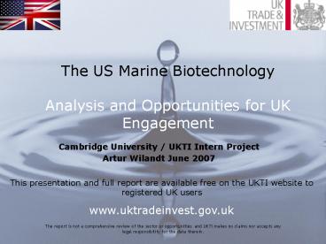 Title: The US Marine Biotechnology Analysis and Opportunities for UK Engagement