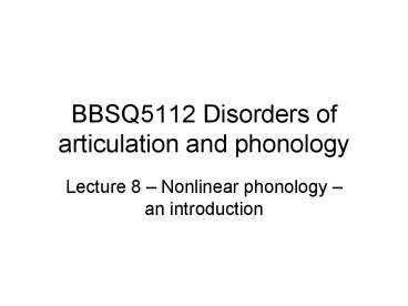 BBSQ5112 Disorders of articulation and phonology PowerPoint PPT Presentation