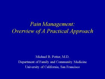Title: Pain Management: Overview of A Practical Approach