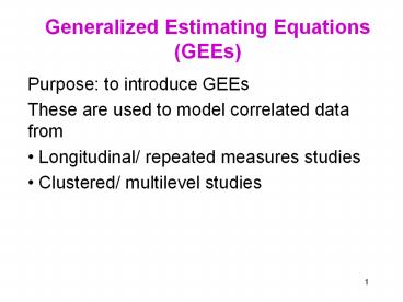 <Notice: Removed> Generalized Estimating Equations (GEEs) PowerPoint PPT Presentation
