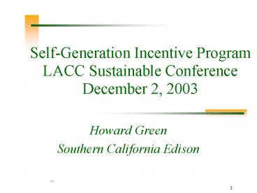 Title: SelfGeneration Incentive Program LACC Sustainable Conference December 2, 2003