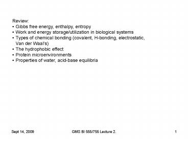 2GMS BI 555/755 Lecture 2 Levels of Protein