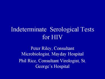 simple/rapid assay - Serum that is reactive is considered HIV antibody