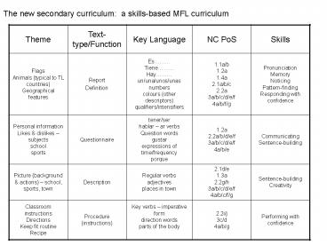 <Notice: Removed> The new secondary curriculum: a skills-based MFL curriculum PowerPoint PPT Presentation