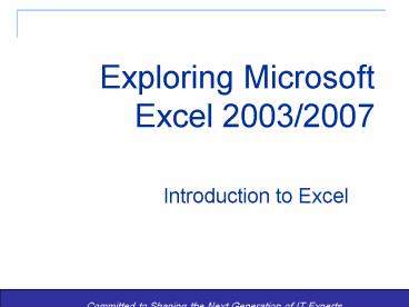 <Notice: Removed> Exploring Microsoft Excel 20032007 PowerPoint PPT Presentation