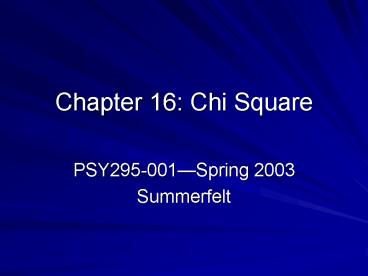 Chapter 16: Chi Square PowerPoint PPT Presentation