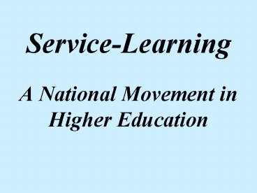service, not just for putting in hours. - Encourages a greater understanding of social