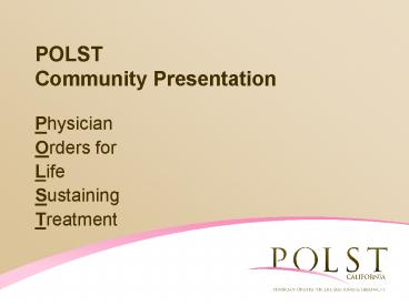 • CA Assembly Bill 3000 recognizes POLST as a legal