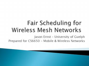 Fair Scheduling for Wireless Mesh Networks PowerPoint PPT Presentation