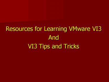 <Notice: Removed> Resources for Learning VMware VI3 PowerPoint PPT Presentation