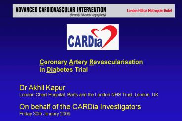 the CARDia Investigators Friday 30th January 2009