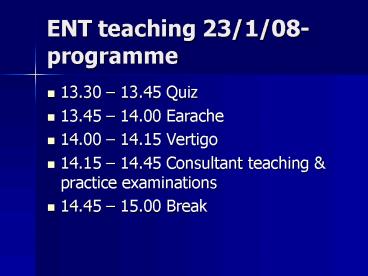 1ENT teaching 23/1/08- programme