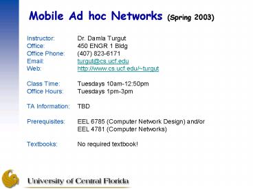 <Notice: Removed> Mobile Ad hoc Networks Spring 2003 PowerPoint PPT Presentation
