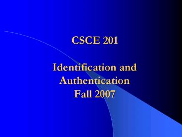 <Notice: Removed> CSCE 201 Identification and Authentication Fall 2007 PowerPoint PPT Presentation