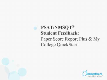 PSAT/NMSQT Student FeedbackPaper Score Report