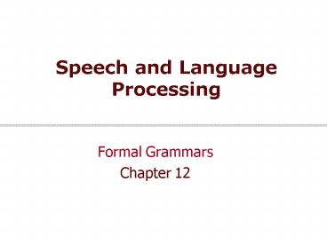 <Notice: Removed> Speech and Language Processing PowerPoint PPT Presentation