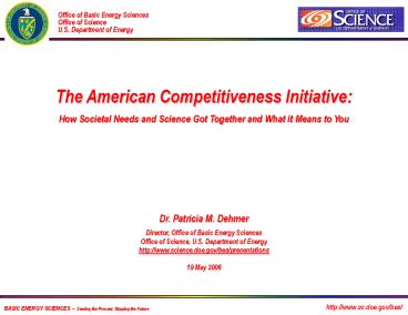 Dr. Patricia M. Dehmer Director, Office of Basic
