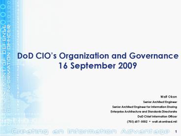 <Notice: Removed> DoD CIOs Organization and Governance 16 September 2009 PowerPoint PPT Presentation